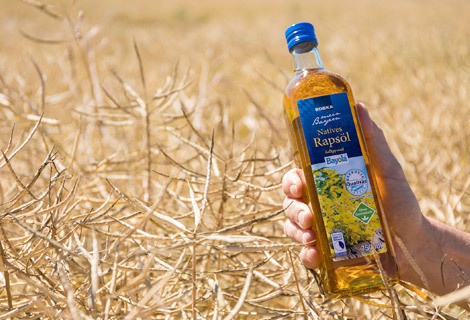 Die geernteten Körner werden auf dem Hof gelagert und regelmäßig auf ihre Qualität überprüft. In der kleinen Ölmühle der Erzeugergemeinschaft wird das Rapskorn gepresst. Durch die einzigartige Kaltpressung ist das naturbelassene Öl besonders reich an Vitamin E. Das Siegel „Geprüfte Qualität Bayern“ garantiert die Einhaltung der strengen Qualitätsanforderungen.