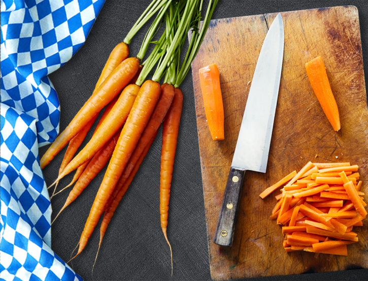Karotten punkten immer mit ihrem aromatischen Geschmack und wertvollen Inhaltsstoffen. Bemerkenswert ist ihr hoher Gehalt an Carotin, auch bekannt als Provitamin A. Es gibt nicht nur der Karotte ihre tolle Farbe, sondern schützt auch Ihre Haut vor freien Radikalen. Probieren Sie die Karotte nicht nur im Salat – auch als Pfannengericht schmeckt das vielseitige Gemüse.