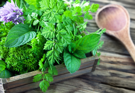 Die frischen krausen Blätter gehören zu den traditionsreichsten Kräutern der deutschen Küchen. Petersilie ist zudem ausgesprochen gesund. Sie enthält beachtliche Mengen der Vitamine A, B1, B2, C und E und der Spurenelemente Kupfer, Zink und Fluor. Durch ihren hohen Gehalt an Kalium wirkt Petersilie entwässernd. Verwenden Sie sie also ruhig nicht nur blatt-, sondern bundweise.