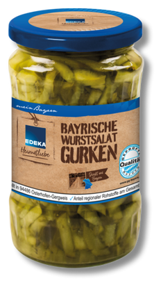 Egal ob Wurst-, Kartoffel- oder Nudelsalat – mit aromatisch eingelegten Gurken schmeckt’s einfach besser. Unsere Wurstsalatgurken sind lecker gewürzt und bereits in feine Streifen geschnitten. Sie müssen nicht mehr umständlich schnibbeln. Geben Sie ruhig auch etwas vom Gurkensud ins Salatdressing. Wir garantieren, es wird köstlich.